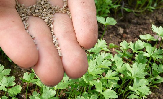 Навесні, щойно розтане сніг і земля прогріється, петрушка швидко зійде й утворить свіжу зелень набагато раніше, ніж при весняному посіві.